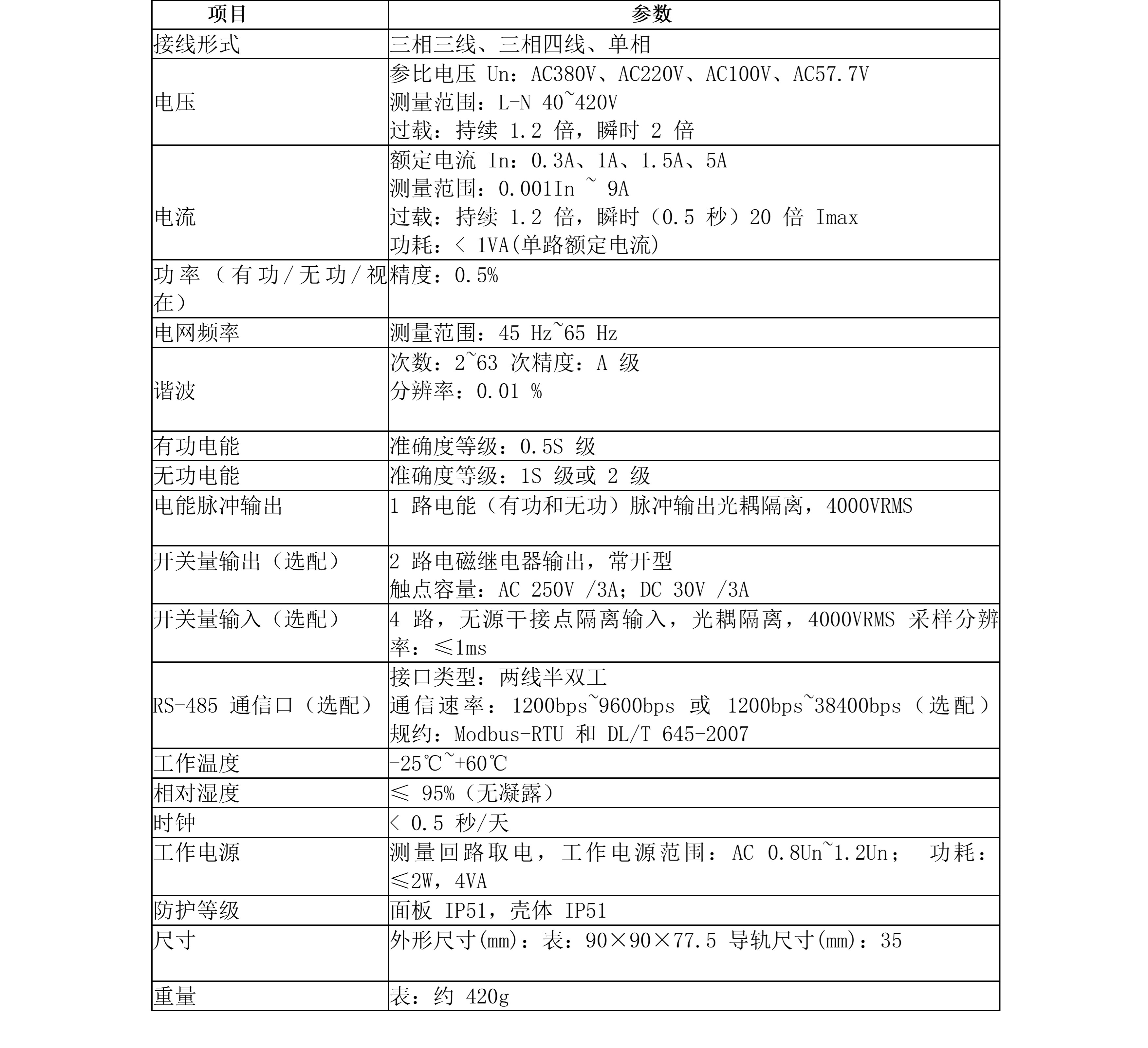 電能質量參數;可計量基波和全波有功和無功電能;具有復費率電能和復費率需量功